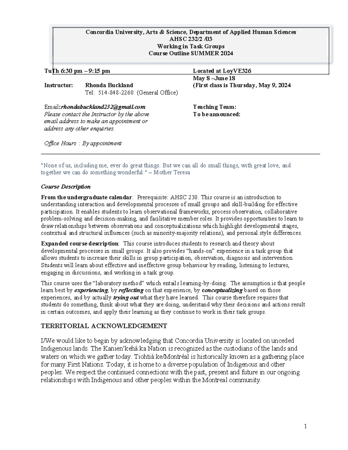 AHSC 232 Course Outline: Working in Task Groups - Summer 2024 - Studocu