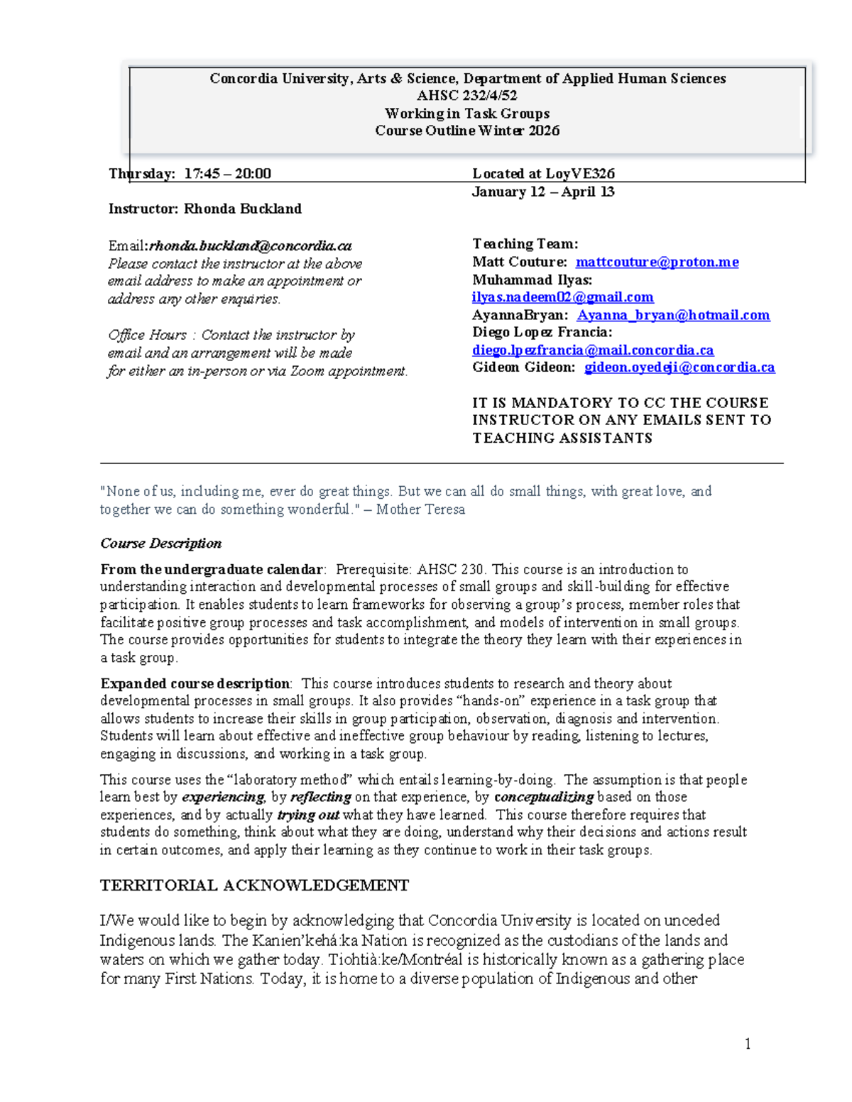 AHSC 232 Course Outline: Working in Task Groups - Winter 2026 - Studocu