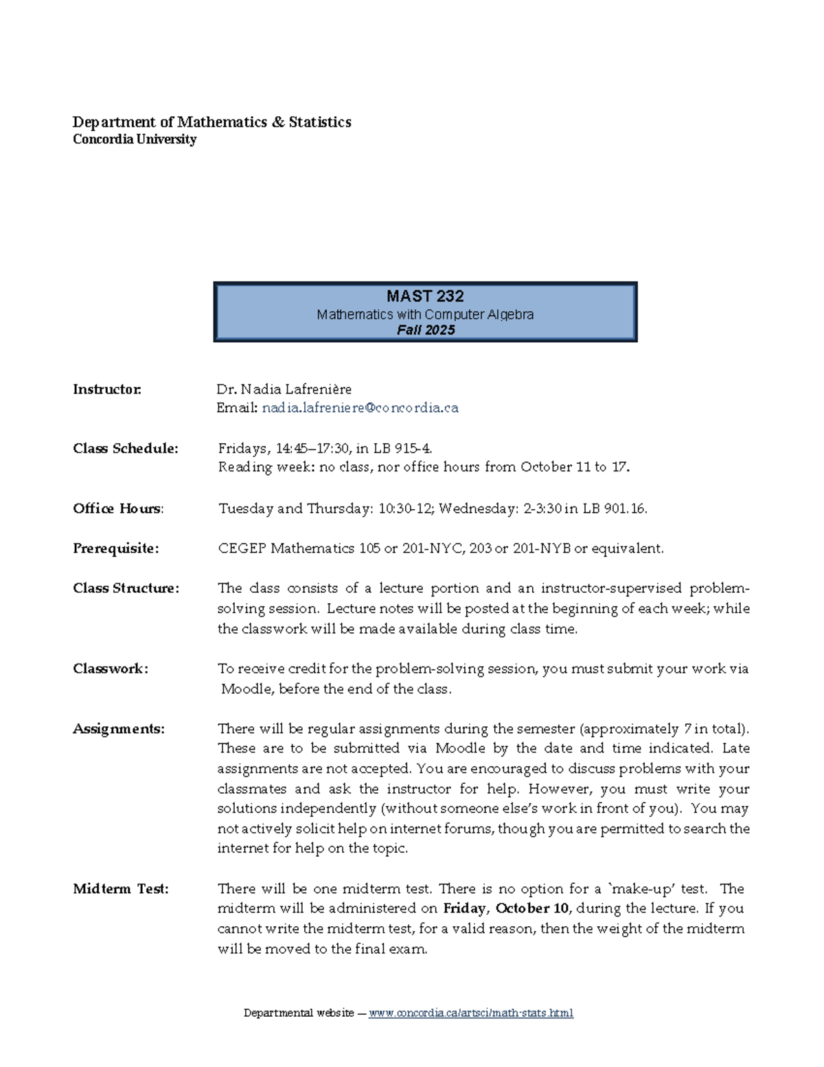 MAST 232 Fall 2025: Course Outline and Important Information - Studocu