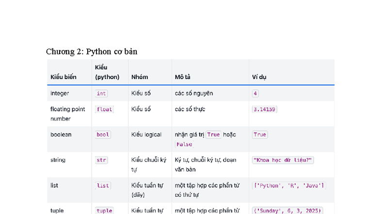 Chương 2: Python Cơ Bản - Kiểu Dữ Liệu và Phương Thức - Studocu
