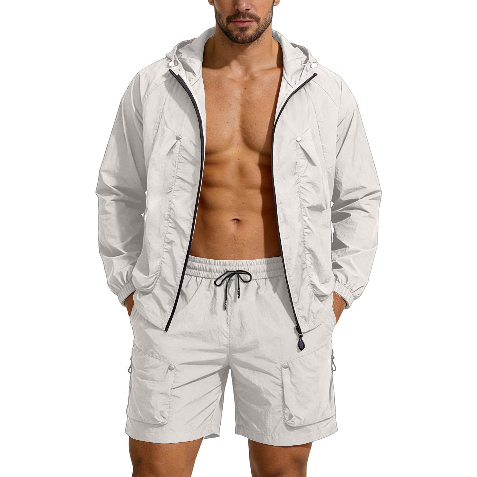 Amzcrzy Mens Summer Outfits Solid Color Hooded Zip Up Two Piece Sets ...