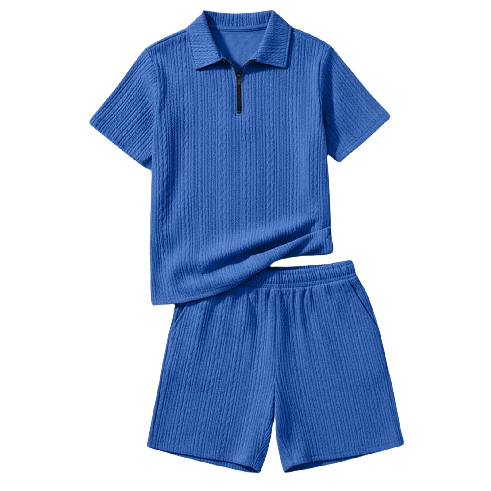 CAIVO Children Boys Summer Outfit Sets Quarter Zip Lapel Short Sleeve T ...