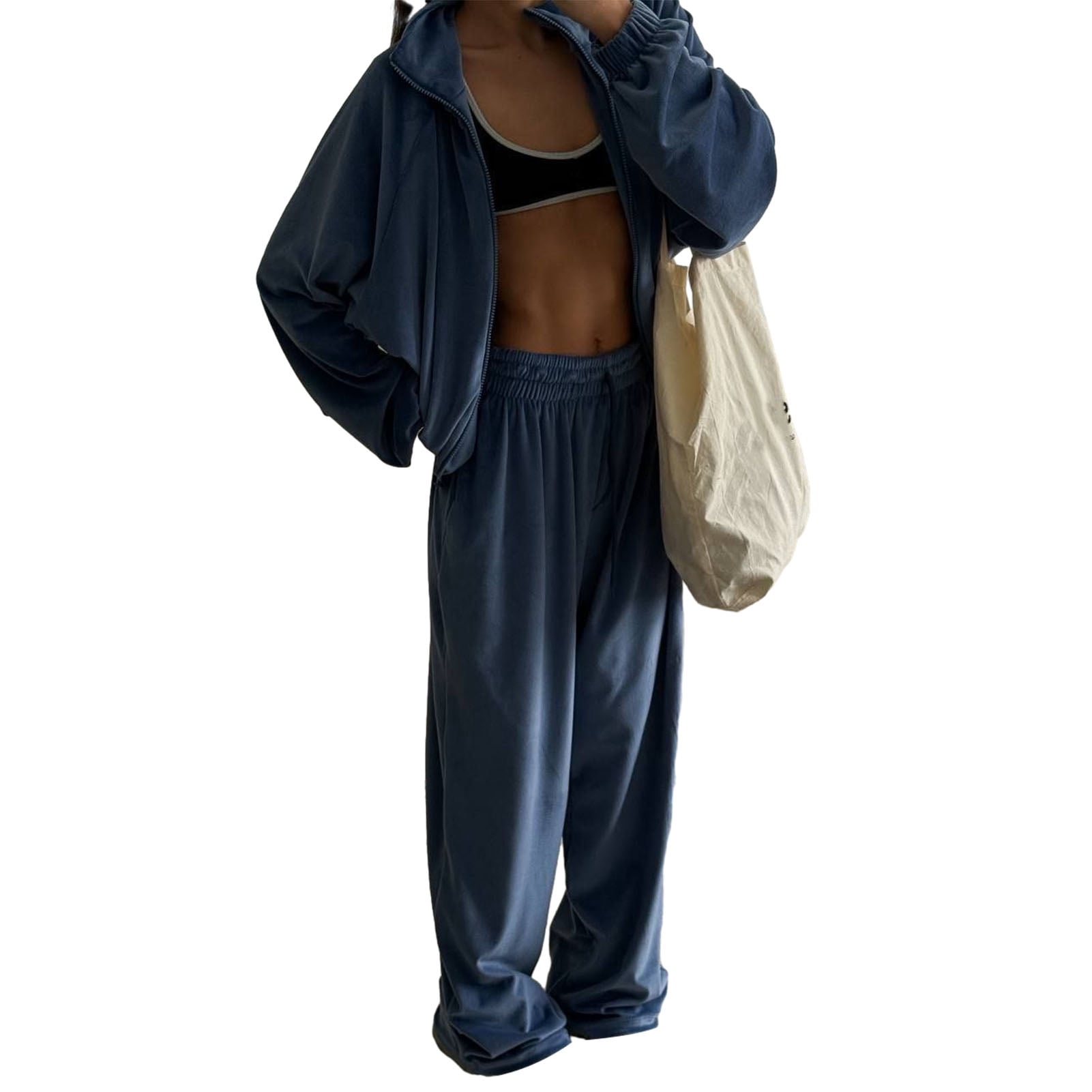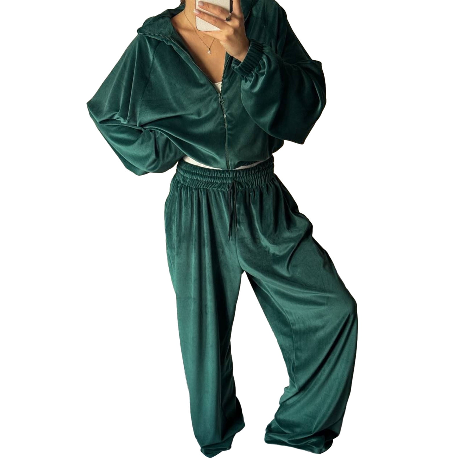awjaisca Two Piece Tracksuit Set for Women Cropped Zip Up Sweatshirt ...