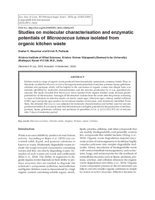 (PDF) Isolation and Characterization of Micrococcus luteus from ...