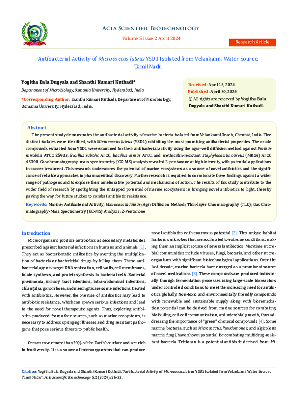 (PDF) Antibacterial Activity of Micrococcus luteus YSD1 Isolated from ...