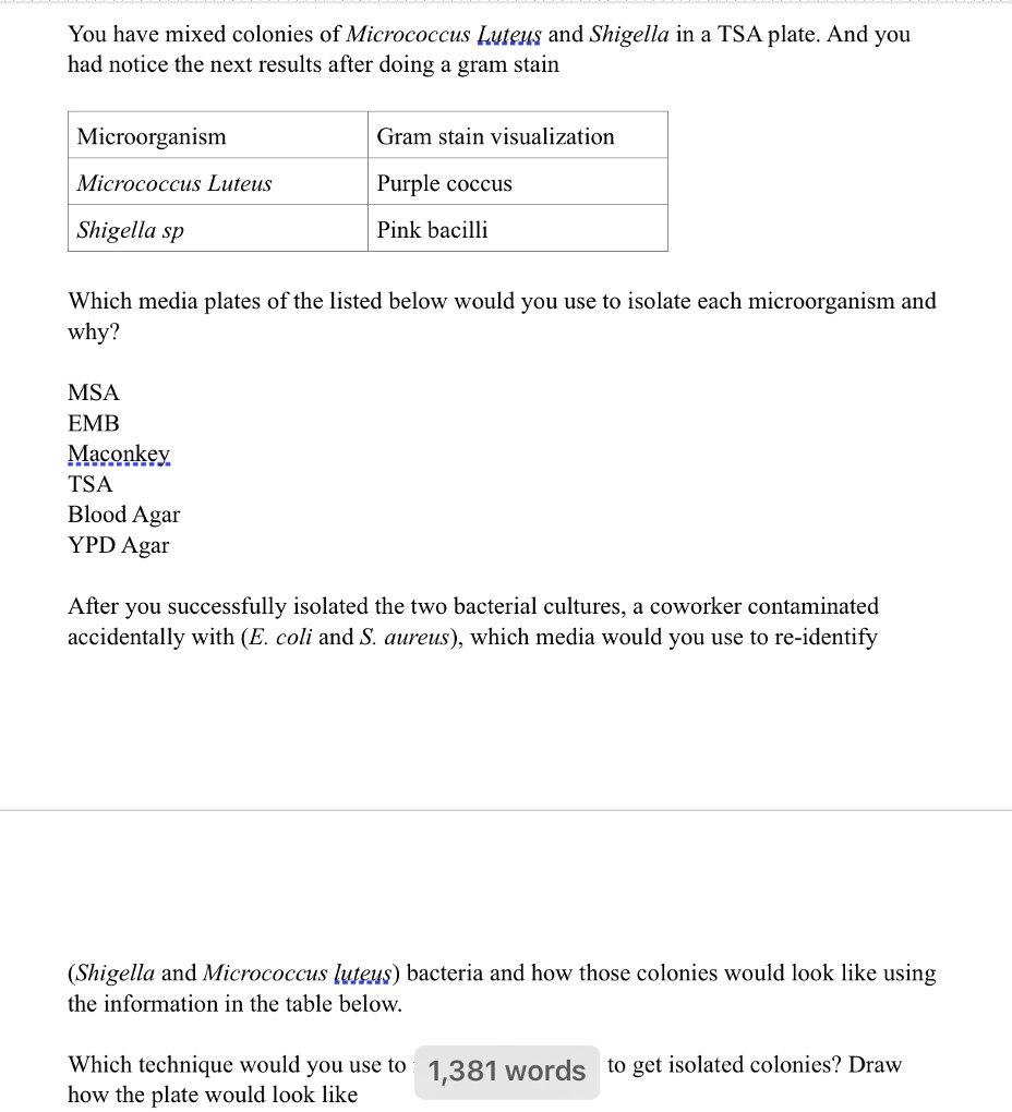 Identification and Characteristics of Micrococcus luteus and | Course Hero