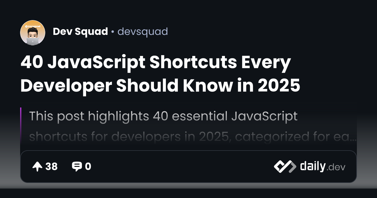 40 JavaScript Shortcuts Every Developer Should Know in 2025 | daily.dev