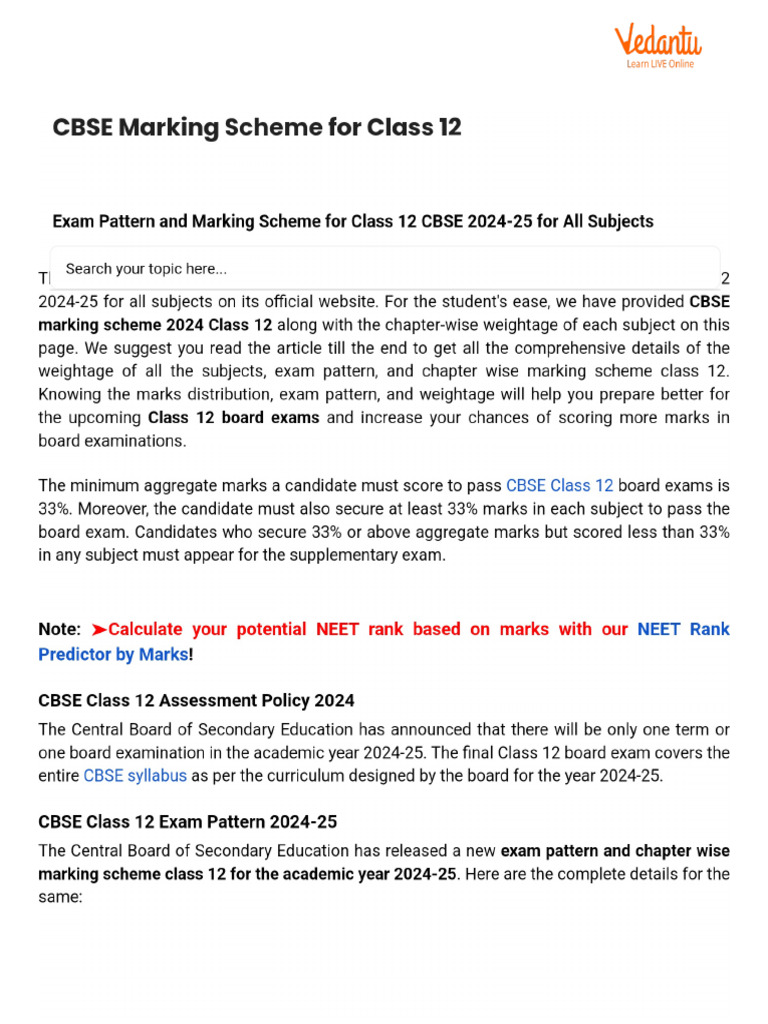 Marking Scheme for Class 12 CBSE 2024-25 for All Subjects - PW Store