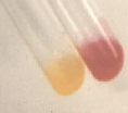 Rapid urease test for Proteus vulgaris. The change in color (yellow to ...