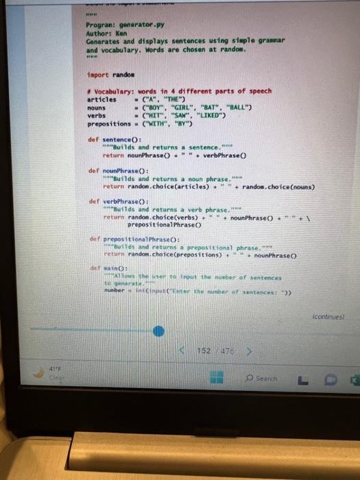 Solved insert comments explaining the code.PYTHON First | Chegg.com