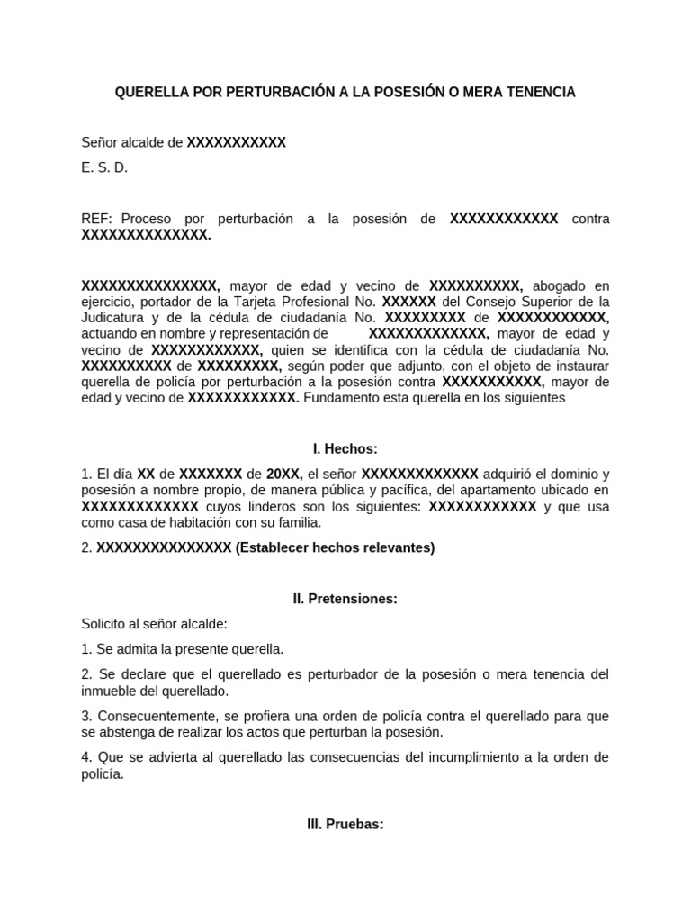 Querella por Perturbación de Posesión | PDF | Posesión (Ley) | Justicia