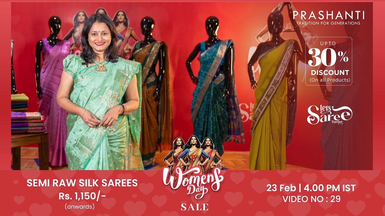 Semi Raw Silk Sarees | Women's Day Sale - Up to 30% OFF | Video - 29 ...