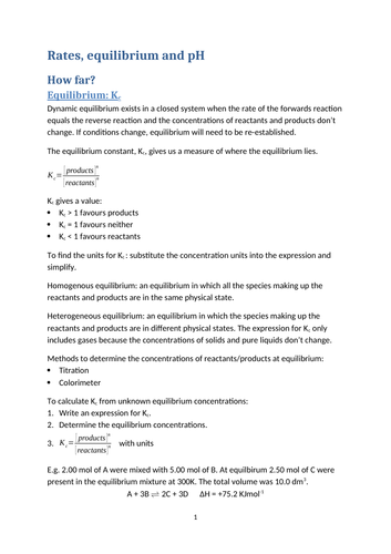OCR A-Level Chemistry How Far? Equilibrium Revision Notes | Teaching ...