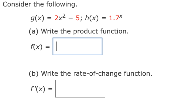 Solved Consider the following. g(x)=2x2−5;h(x)=1.7x (a) | Chegg.com
