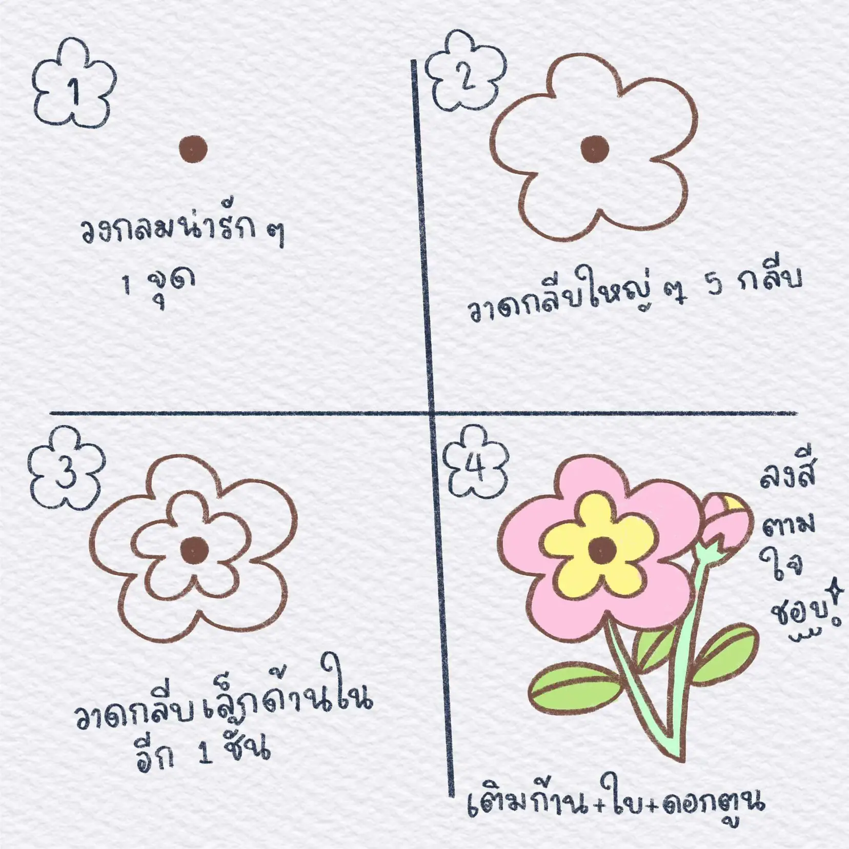 วิธีวาดดอกไม้ง่าย ๆ ใน 4 ขั้นตอน 🌼 | Gallery posted by bapbiboo_story ...
