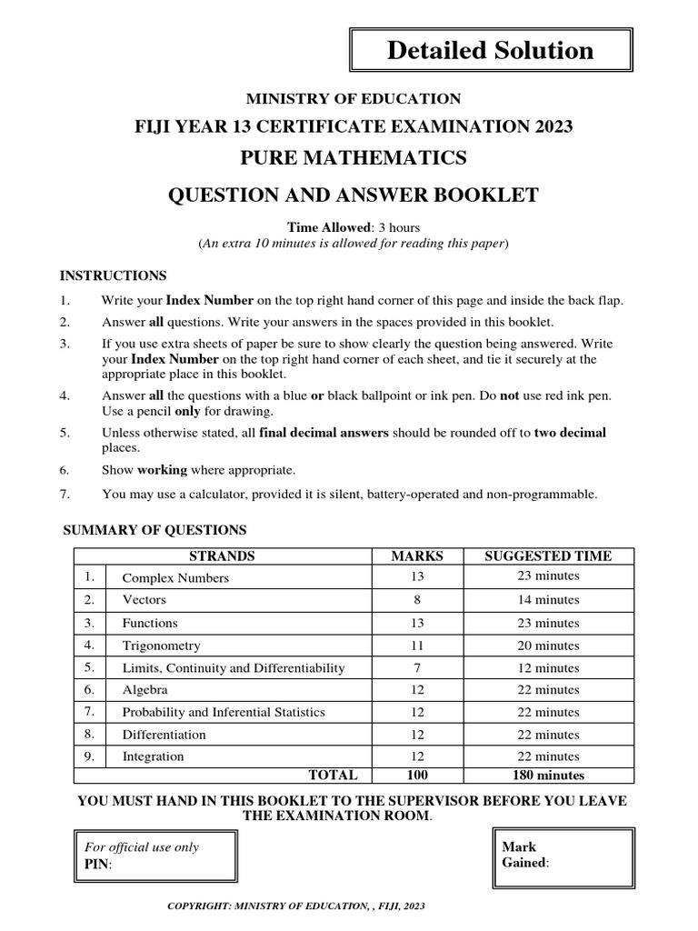 2023 Fy13ce Pure Mathematics Detailed Solution | PDF | Mathematical ...