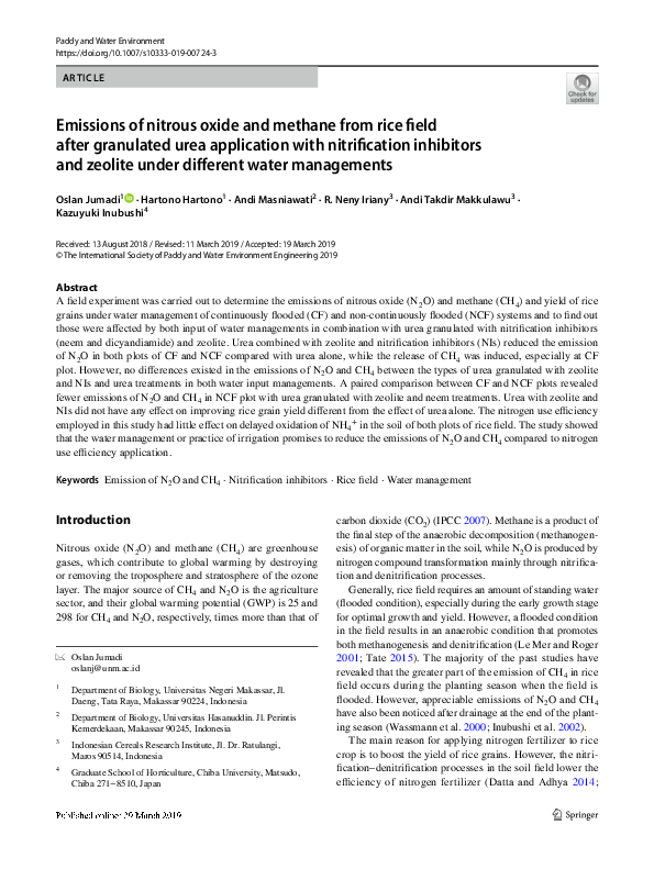 (PDF) Emissions of nitrous oxide and methane from rice field after ...