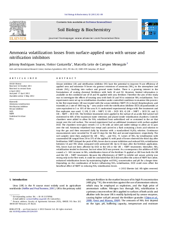 (PDF) Ammonia volatilization losses from surface-applied urea with ...