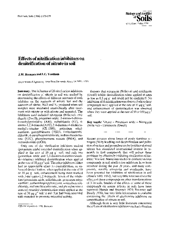 (PDF) Nitrification Inhibitors. II. Studies with furano compounds.