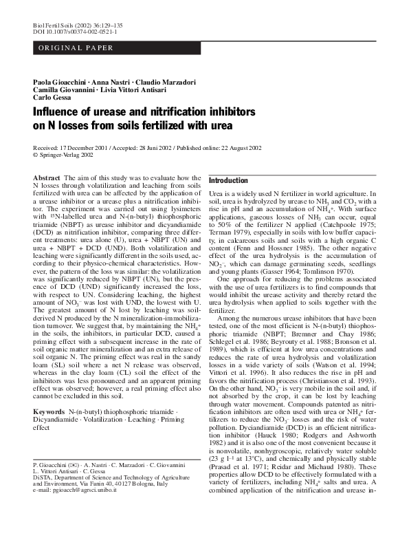 (PDF) The influence of urease and nitrification inhibitor on loss of N ...