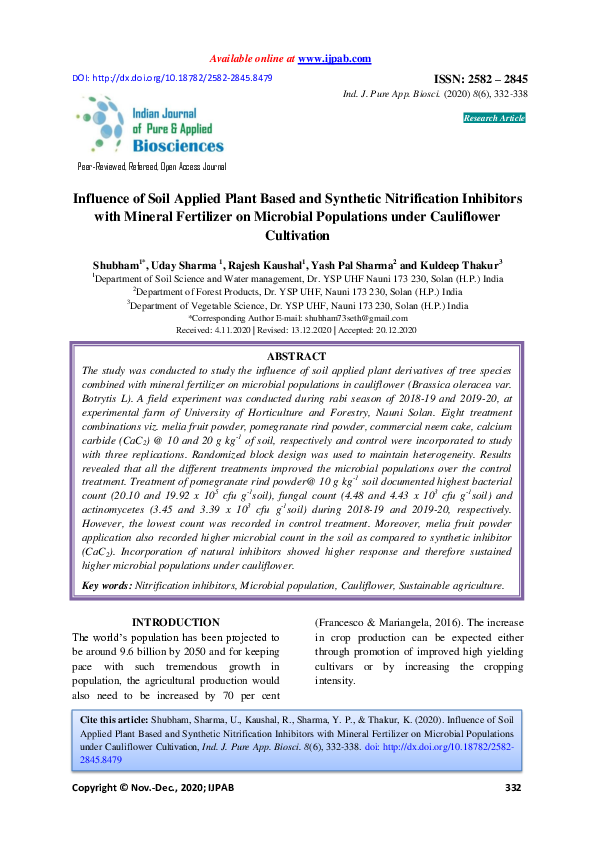 (PDF) Influence of Soil Applied Plant Based and Synthetic Nitrification ...