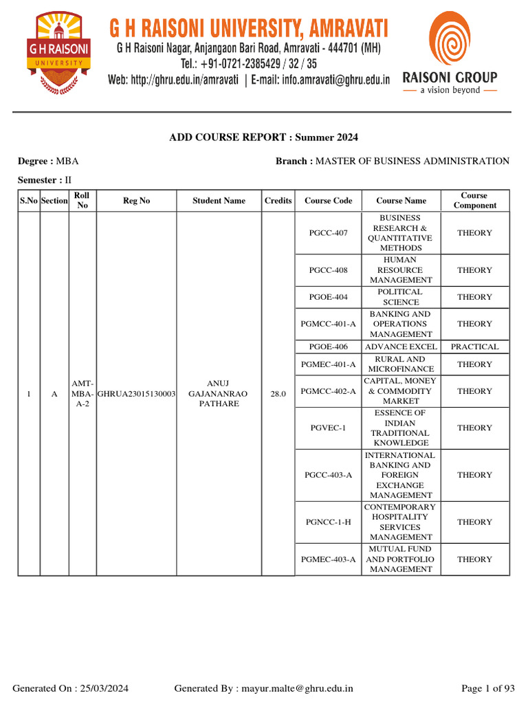 MBA Summer 2024 Course Report | PDF | Analytics | Business