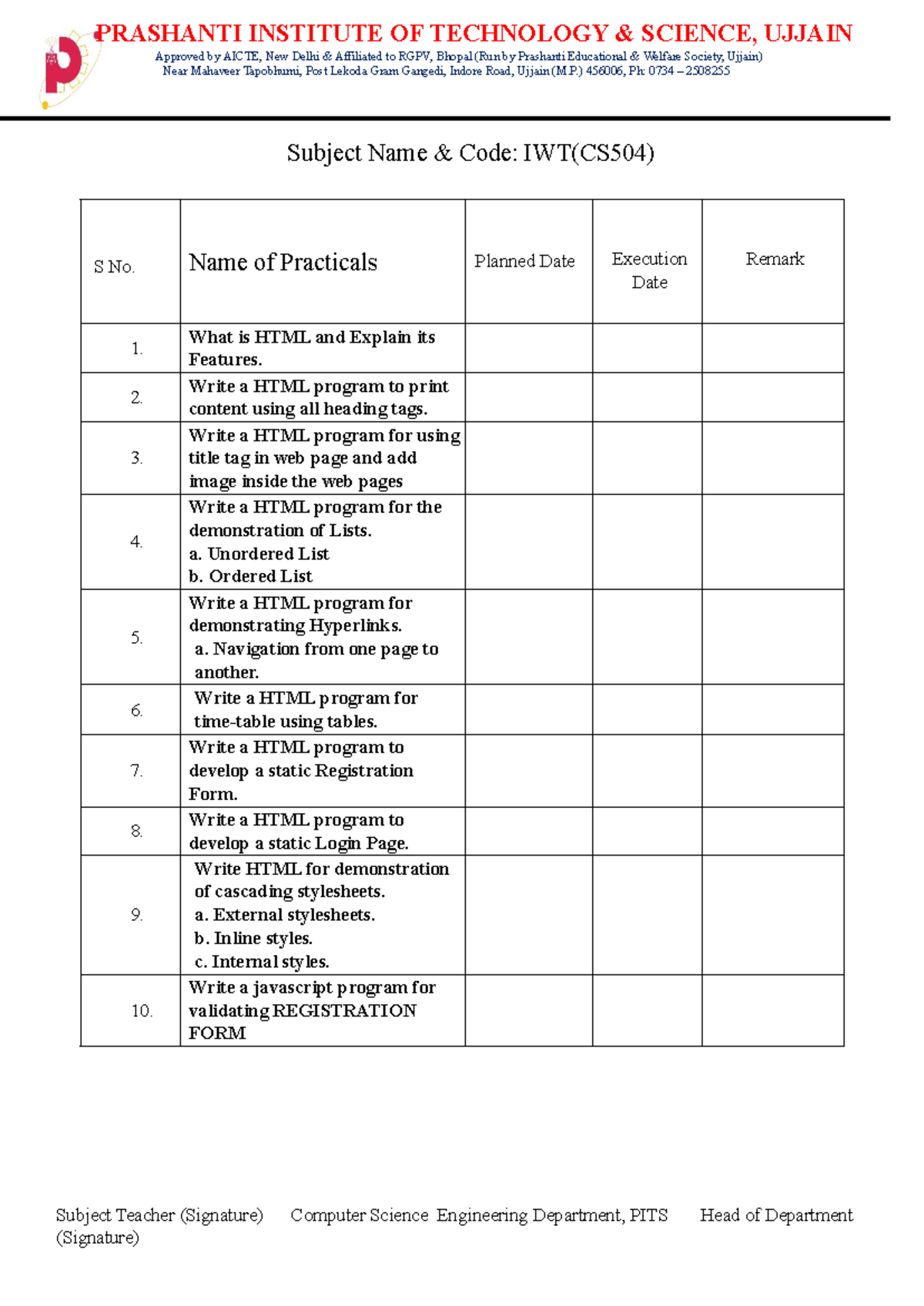 IWT(CS504) Practical Lesson Plan: HTML & JavaScript Exercises - Studocu