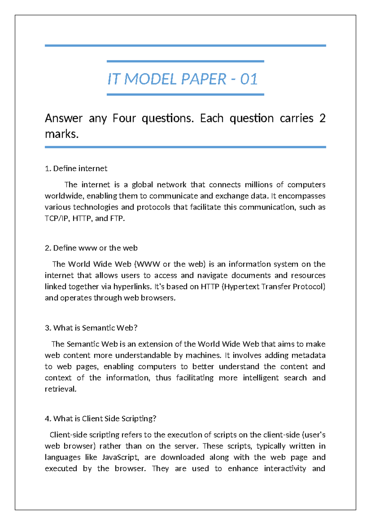 IT model paper-01 - Answer any Four questions. Each question carries 2 ...
