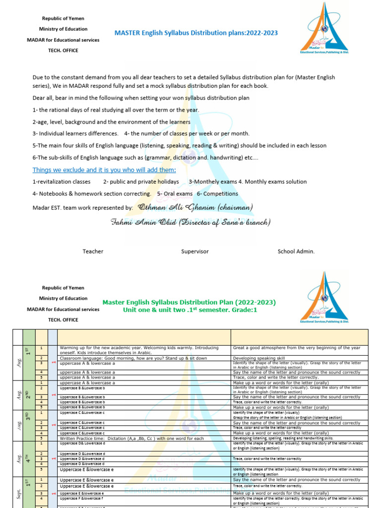 Master English Syllabus Distribution Plans2022-2023 MASTER | PDF ...