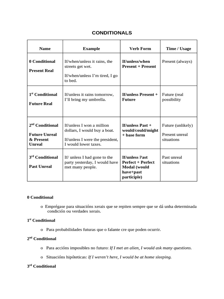 Zero First Second And Third Conditional