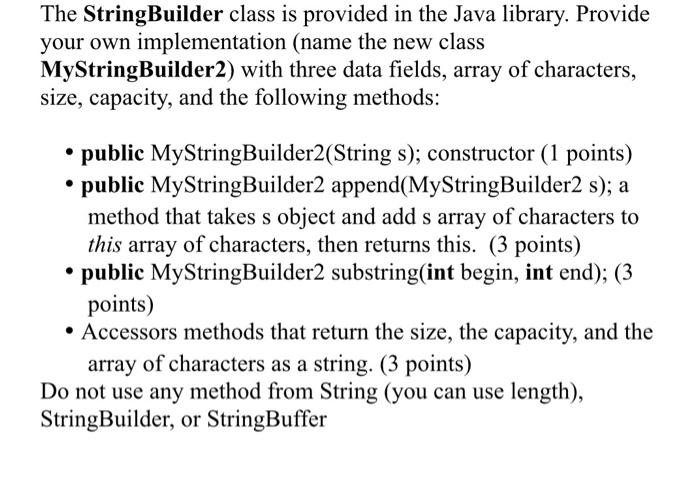 Solved The StringBuilder class is provided in the Java | Chegg.com