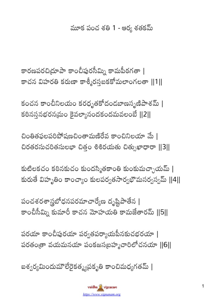 Mooka Pancha Sathi 1 - Arya Satakam Telugu Large | PDF