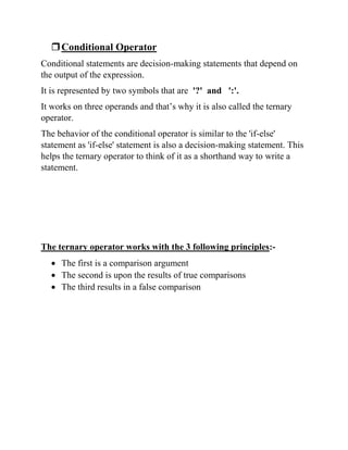 Conditional operator/Ternary Operator in c/C++ | PPTX