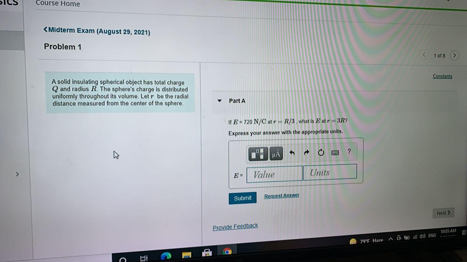 Solved Course Home E = Value Units Submit Request Answer | Chegg.com