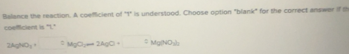 Solved: Balance the reaction. A coefficient of "1" is understood ...
