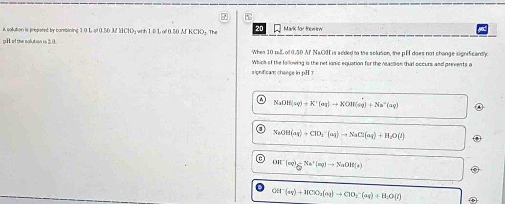 Solved: A solution is prepared by combining 1.0 L of 0.50MHClO_2 with 1 ...