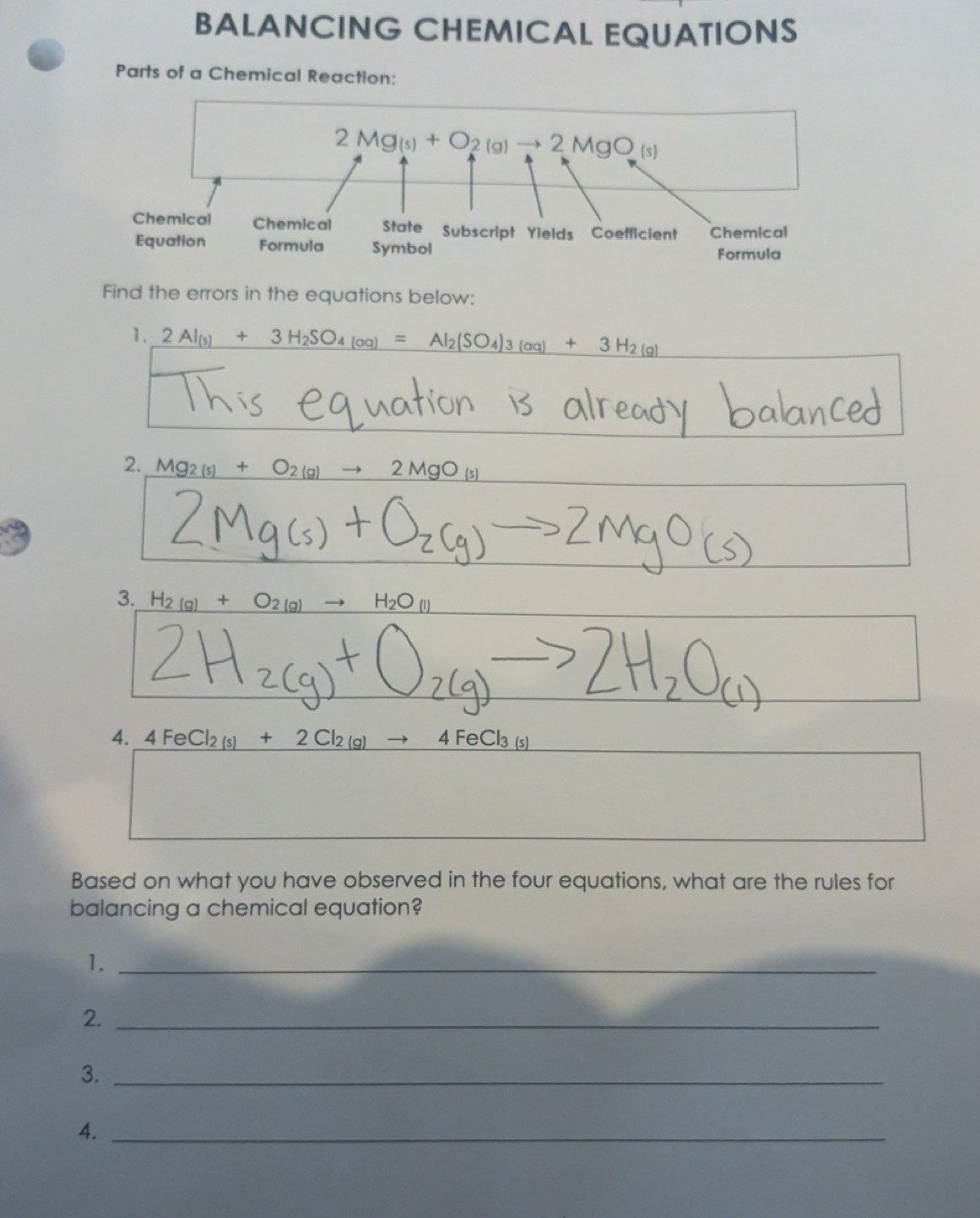 Solved: BALANCING CHEMICAL EQUATIONS Parts of a Chemical Reaction: Find ...