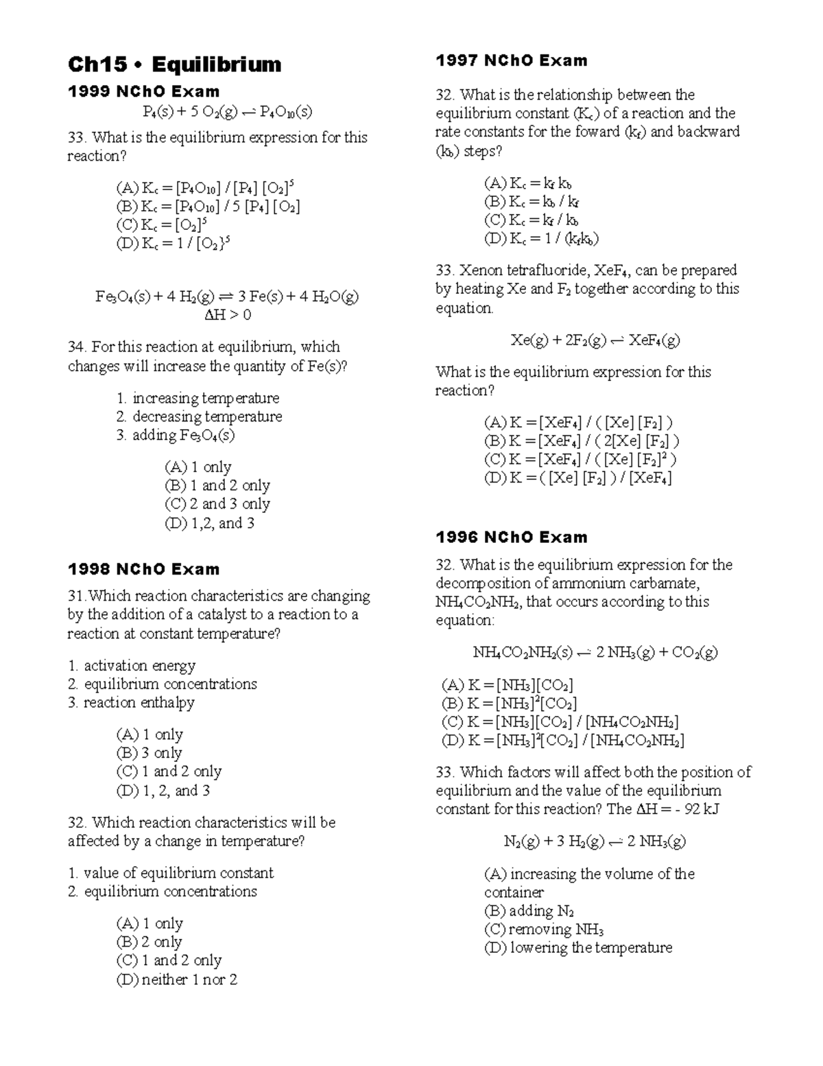 Ch 15 NChO Homework: Equilibrium Constant & Reaction Dynamics - Studocu