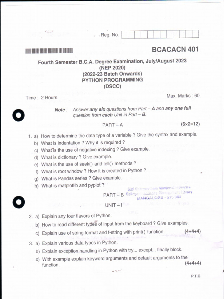 Based on this image's title: “Python Programming-3rd Sem BCA NEP 2023 | PDF