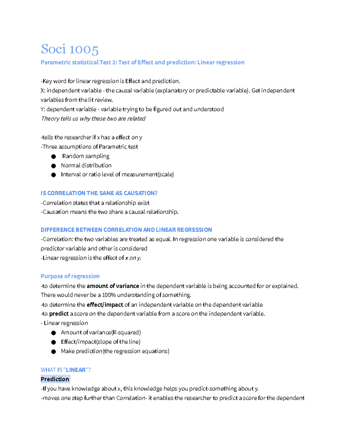 Soci 1005 - lecture notes - Soci 1005 Parametric statistical Test 2 ...