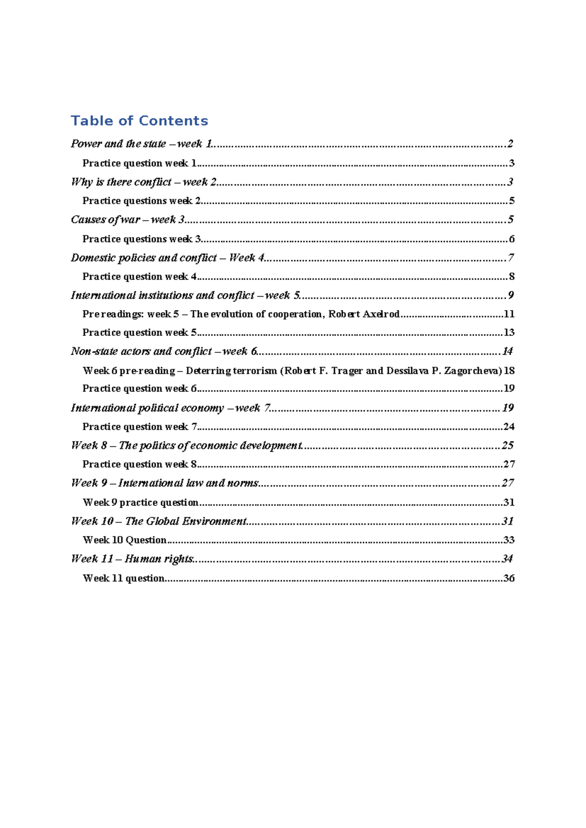1005 Lecture Notes - Table of Contents Power and the state – week - Studocu