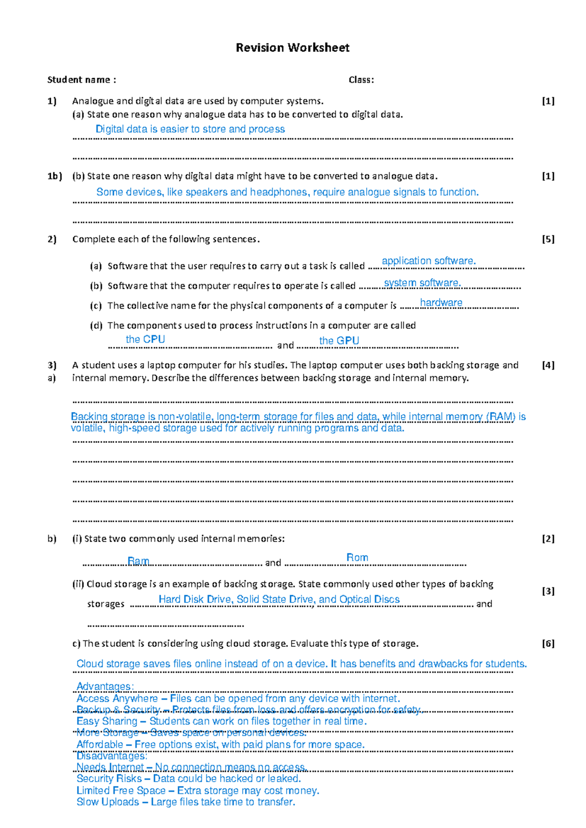 Revision Worksheet: Analogue vs Digital Data (Course Code: 12) - Studocu