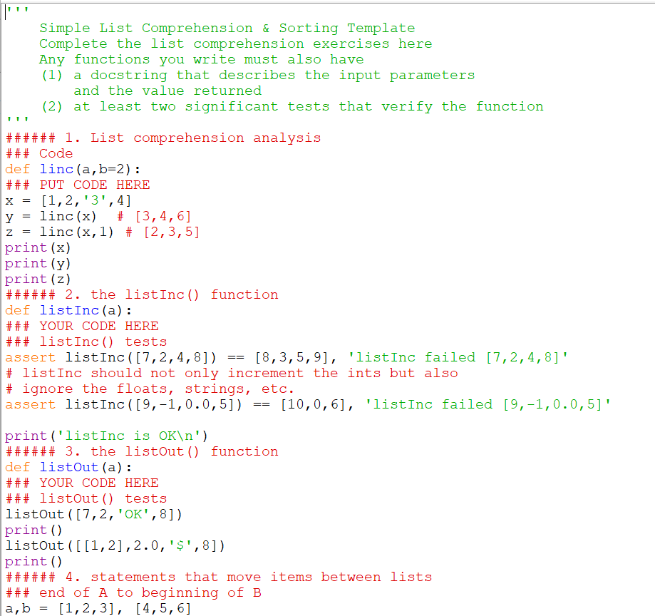 Solved Please use list comprehension to write function | Chegg.com