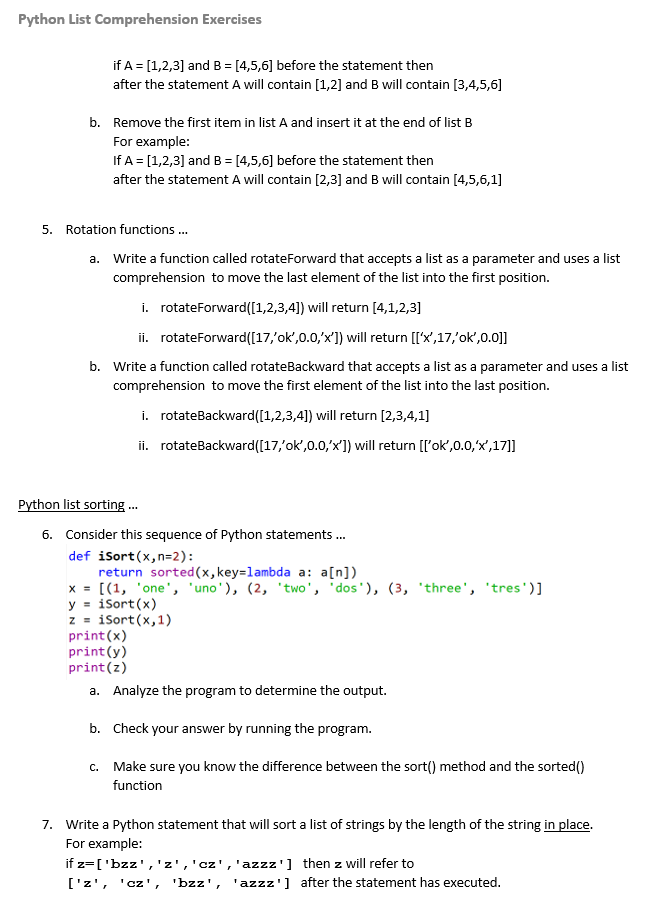 Solved Python List Comprehension Exercises if A=[1,2,3] and | Chegg.com