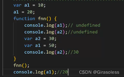 JS 函数作用域 变量声明提升 作用域链 不加var的变量,是全局变量_js 中在函数里声明不写var的变量 是全局变量吗-CSDN博客