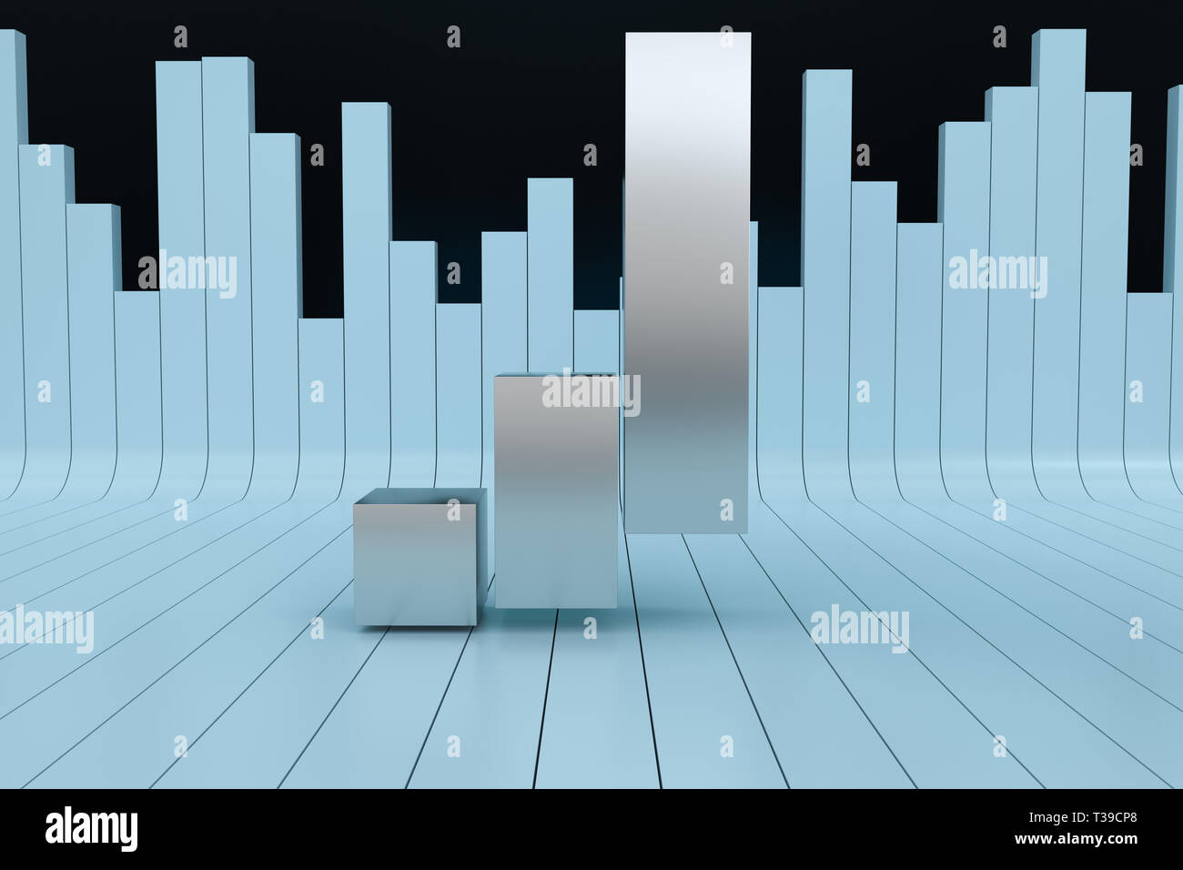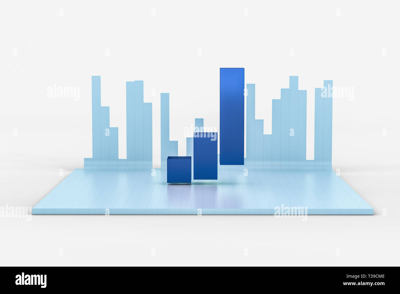 3d rendering, front view of blue colored business statistic growth ...