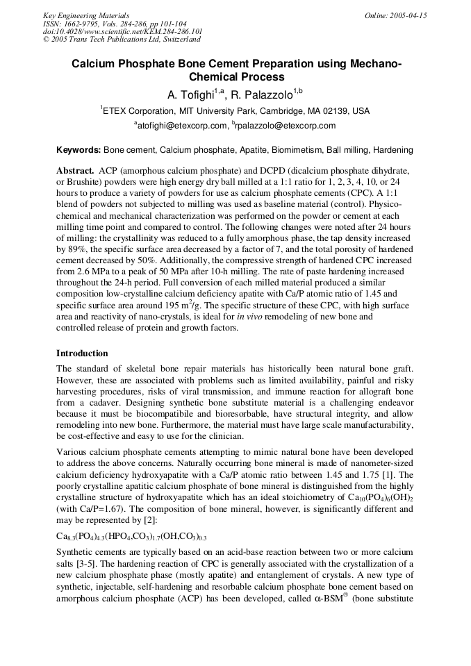(PDF) Calcium Phosphate Bone Cement Based on Wet Prepared Dicalcium ...