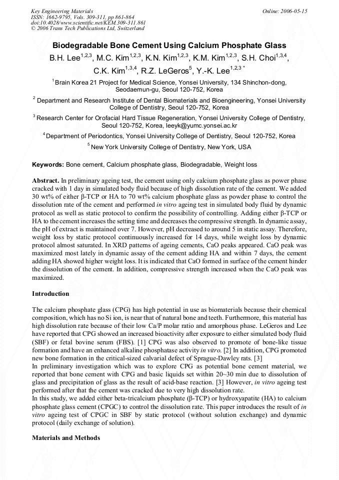 Biodegradable Bone Cement Using Calcium Phosphate Glass | Scientific.Net