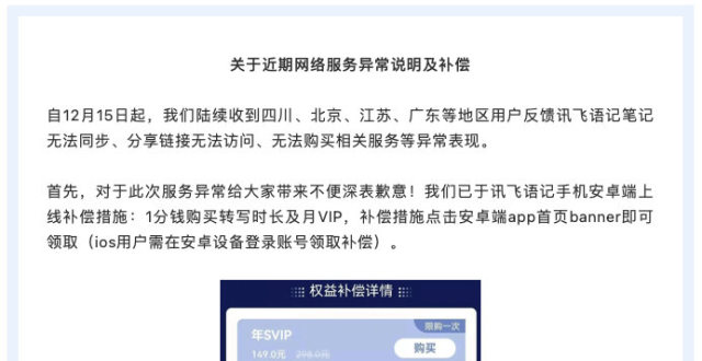讯飞语记就多地网络服务异常致歉:系国家反诈骗中心误封禁域名,大部分地区服务已恢复_腾讯新闻