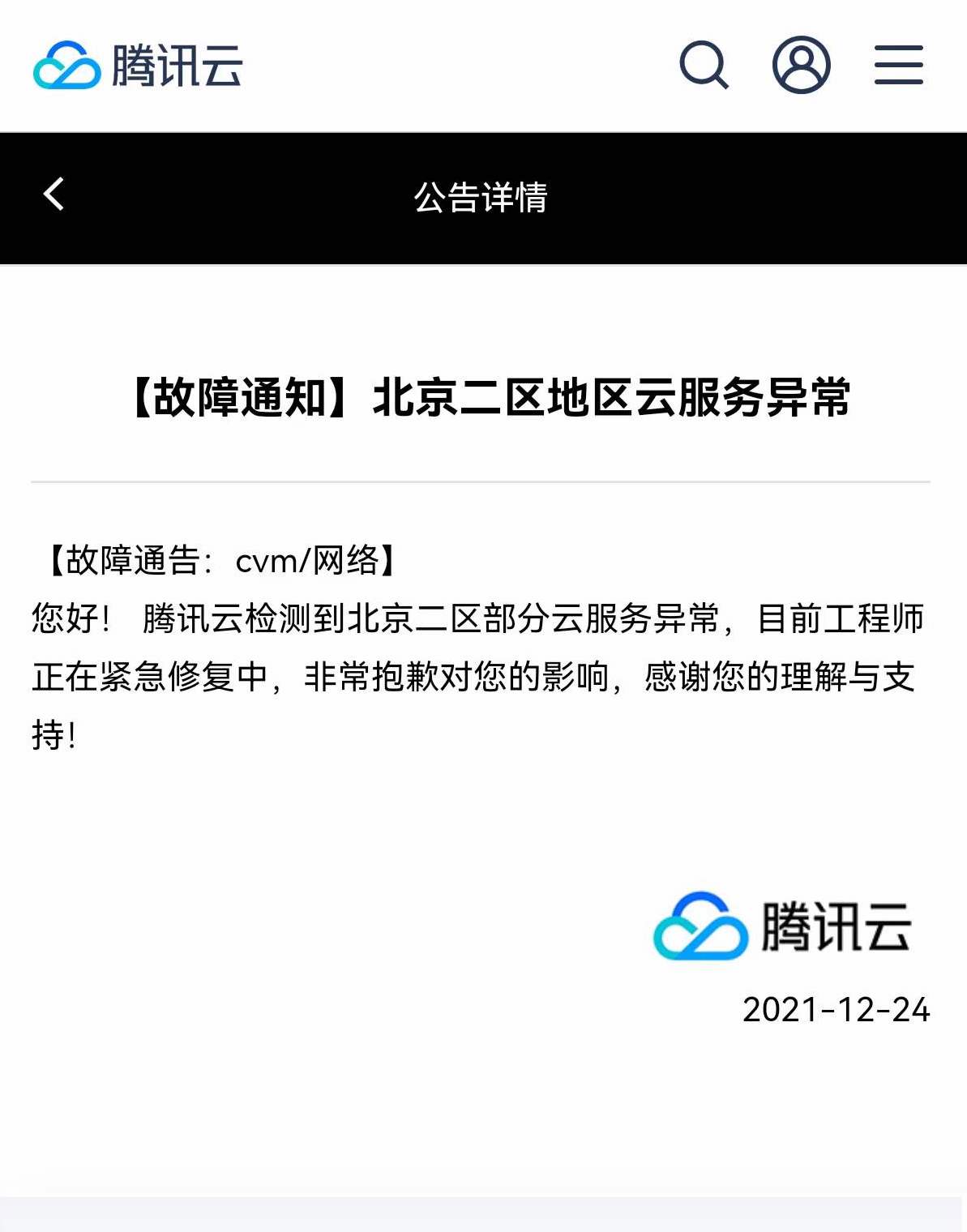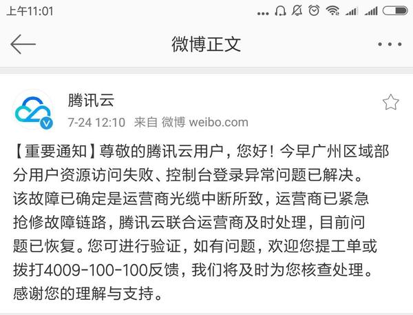 腾讯云服务遭遇故障:官方紧急修复并致歉用户 - 站长工具网